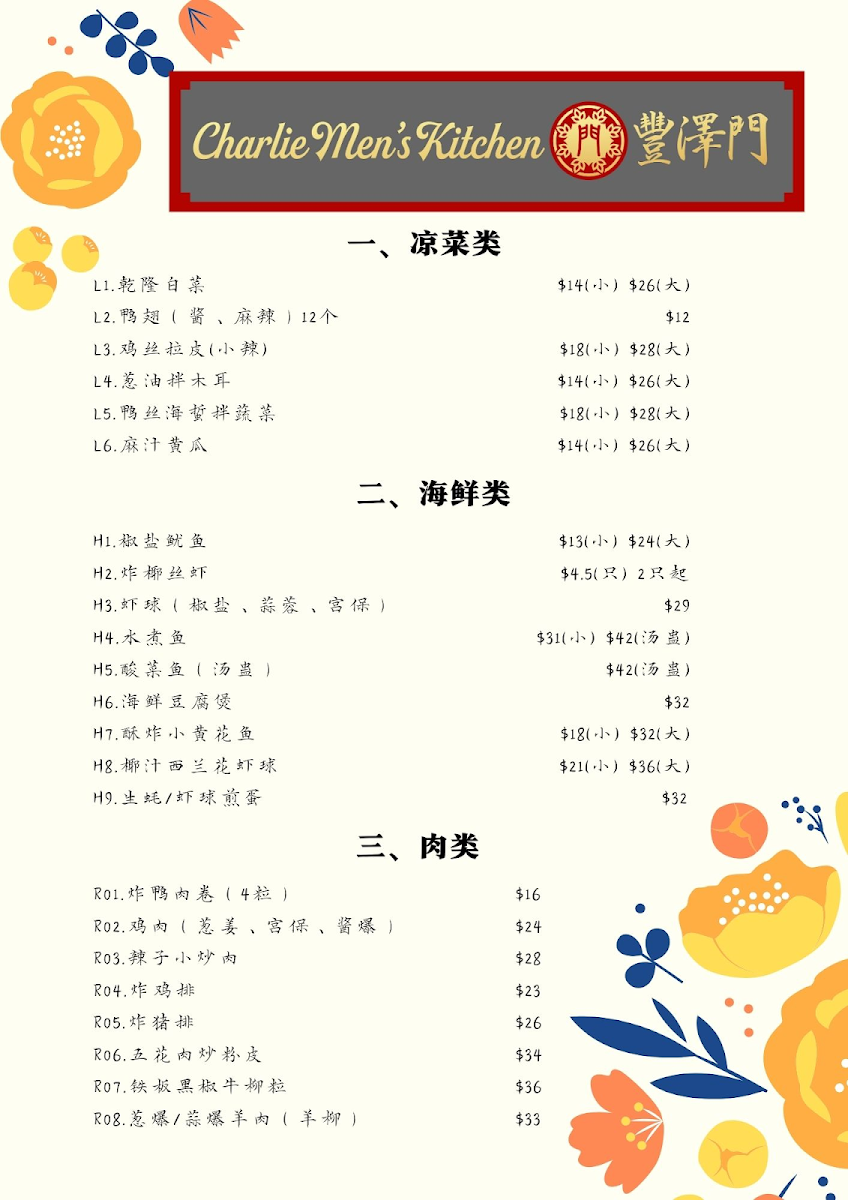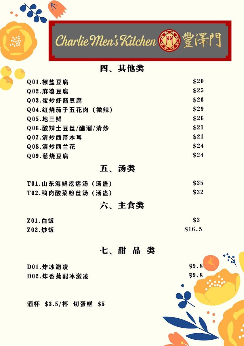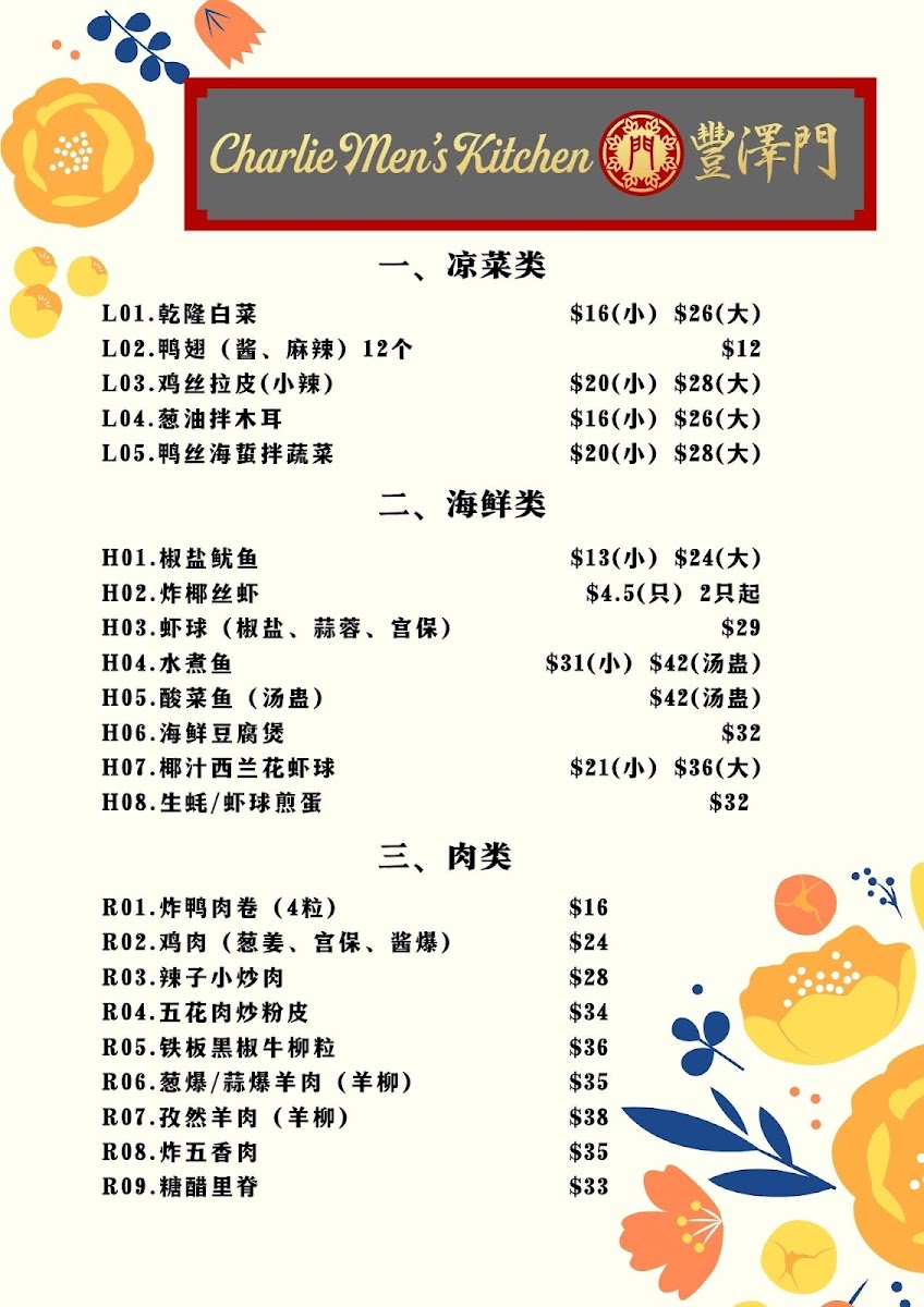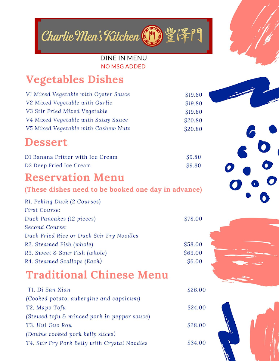 Please paste the menu information (English menu / Chinese menu 1-3), including: