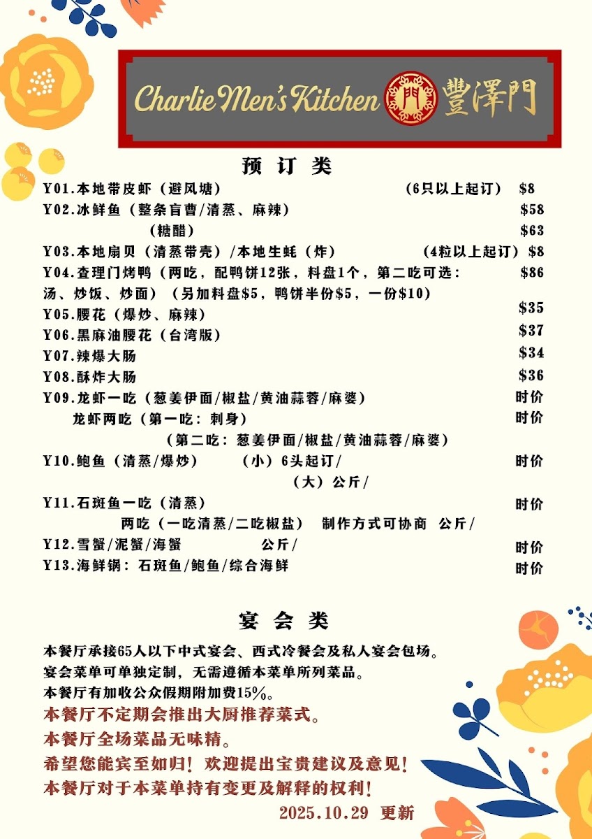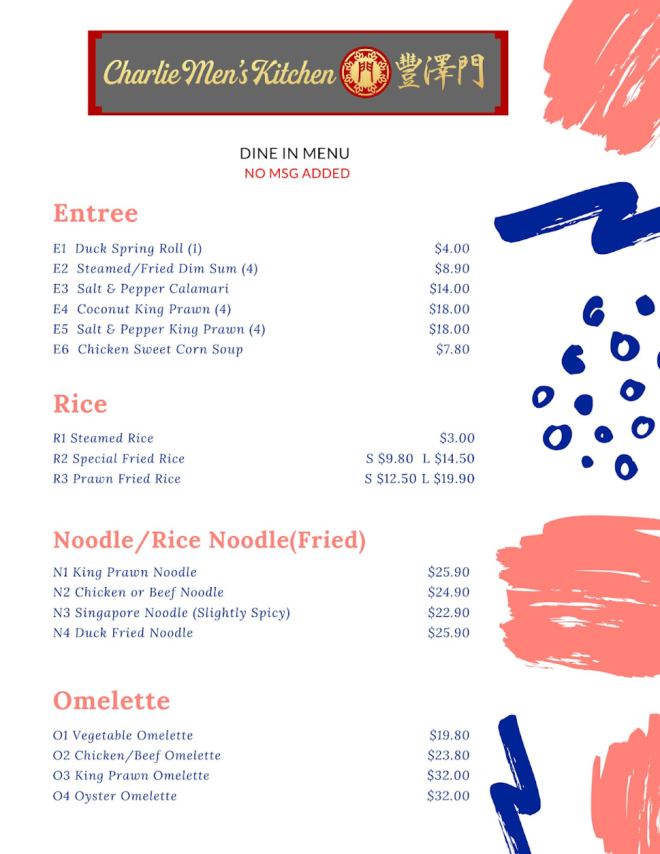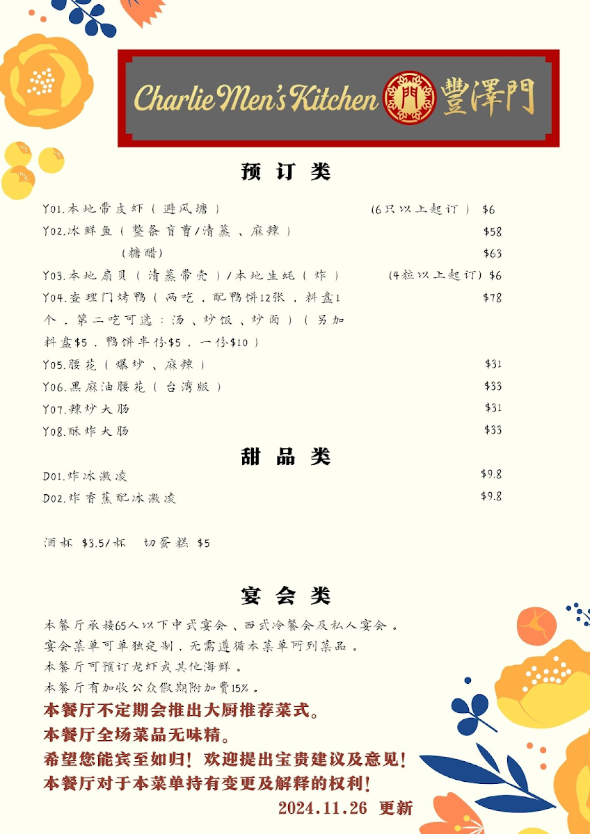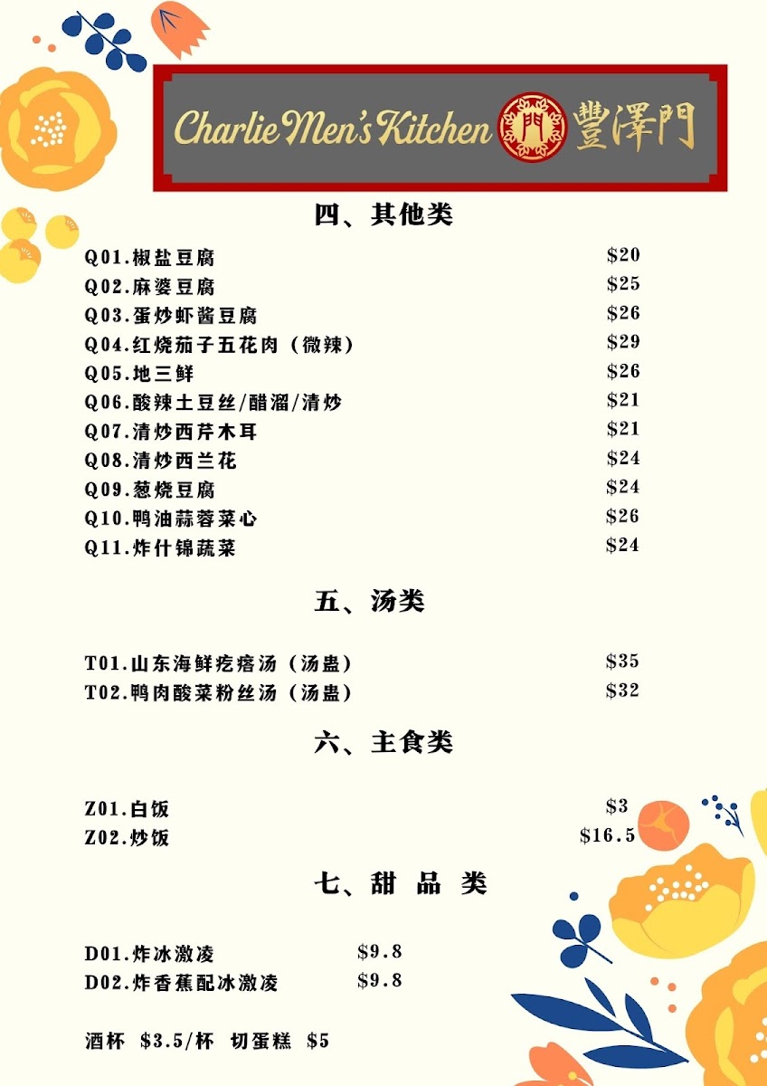 Please paste the menu information (English menu / Chinese menu 1-3), including: